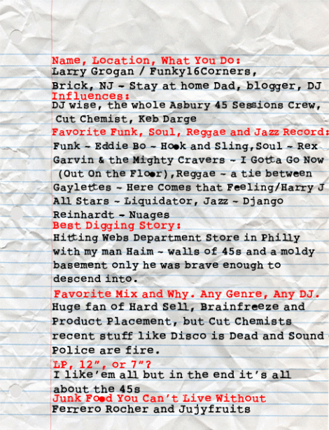 Big Ups with Funky 16 Corners aka Larry Grogan April 3, 2011 · by fleamarketfunk · in 45, 45 records, 45s, Big Ups, Crate Digging, Flea Market Funk, funk, Funky 16 Corners, music, New Jersey, record collecting, Record Digging, records, soul, vinyl. · More info on Larry Grogan aka Funky 16 Corners at Funky 16 Corners Share this: Click to share on X (Opens in new window) X Click to email a link to a friend (Opens in new window) Email Click to share on Tumblr (Opens in new window) Tumblr Click to share on Facebook (Opens in new window) Facebook Click to share on Pinterest (Opens in new window) Pinterest Click to share on Reddit (Opens in new window) Reddit Like Loading... Related