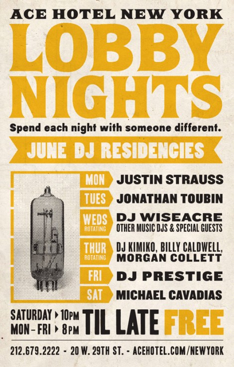 It’s Friday already, and after the good time we all had over at The Ace Hotel in NYC last week, I’m getting ready to do it all again. Shout out to all the people who swung through from NYC and came up from Jersey to check the scene out. This week I have more Tasty Beats and I hear that some of the Hot Peas and Butta and AP 45 Session Crew is gonna be coming through, so it’s always fun to hang with them. What I can promise tonight is this: Good music to nod ya head to (no dancing in the lobby but I won’t tell if you do!). I packed up some Tony Allen as well as a slew of dirty Funk and since my man is swinging by from Philly, some Philly Hip Hop as well. The usual Deep Funk, Soul, Breaks, Real Reggae and Classic Hip Hop throughout the night. Come early for the burger at the Breslin, stay late for the music and vibe. Music starts at 8PM til late. Keep Diggin’!