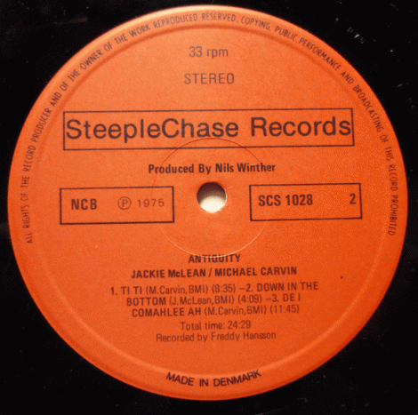 I got a phone call yesterday asking me about my record dealer friend, Old Man Mike who had passed away last year. The party said that someone claiming to be his daughter contacted them in regards to buying records out of their dead father’s collection, and that they needed money. I knew right away it was Mike’s collection. The few of us who respected the guy wanted to try and help by selling them at their value to people who would appreciate them, not just turn a quick buck at garage sales or ebay like the predators waiting for him to die when he was sick. The vultures have already picked this man’s life of collecting rare and obscure records clean for a mere fraction of what they were really worth. I heard that someone came to just buy his comics and ended up getting a huge cache of his records for next to nothing. Mike would be rolling in his grave if he knew people were disrespecting this music like that. He was a fair man, who always had what you were looking for. The type of guy you would just buy the same record again because he always went out of his way to give you what you wanted. I miss my friend, and am disgusted at the way his life’s work that he was proud of has been diminished through greed. I bought this record from Mike, among many others, and am excited to share it with you. 14KT got me thinking about Jazz records when he did the Big Ups interview the other day, so I figured I’d pull some Jackie McLean and Michael Carvin doing “Down In the Bottom” from 1974 on SteepleChase Records.
