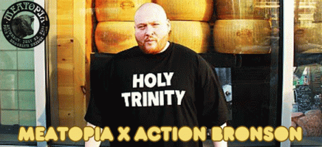 I told you that Action Bronson was no friggin’ joke. You think I’m kidding? When I did the post months ago about the new face of real NYC Hip Hop, I wasn’t playing. The guy of course is a connoisseur of all things Hip Hop as well as anything to do with the kitchen. I’m not talking about the old feed a family of 4 on $2 a day a la Ghostface, I am talking the best of the best in gourmet food. This particular instance is Meatopia, NYC’s festival of everything meat. Bronsolino holds court and is equally comfortable waxing poetic about European sausage as he is rapping about Barry Horowitz and Queens. Whether it’s hanger steak, beef cheek with al dente rice, oxtail stew or cevapi, (look that shit up) Action Bronson may be bigger than Mario Batali after this escapade. Without blinking he can tell you cuts of meat, side dishes, and wine pairings like he was running the kitchen in Eataly. When Bronson blows up, you’ll hear my voice saying: “I told you so”. This guy is a monster. He’s a guy I’d not only like to interview over some good BBQ, but cook a gourmet meal with. Send it. Let’s break some bread and chew the fat my brother. Keep Diggin’!