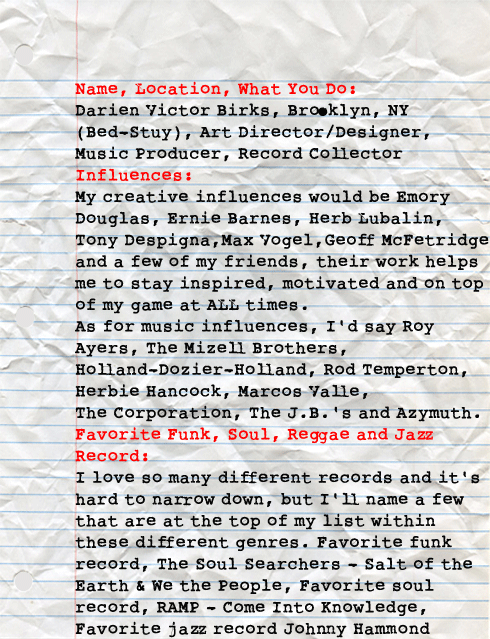 Big Ups with Darien Birks of the Stuyvesants August 23, 2011 · by fleamarketfunk · in 45 records, 7" Records, Big Ups, Brooklyn, Crate Digging, DJ, Flea Market Funk, funk, music, New York, New York City, Producing, record collecting, Record Digging, vinyl. · Check out Darien Birks, 1/2 of the production duo The Stuyvesants here. Check out flwrpt, Darien Birks excellent design and music blog. Follow Darien on Twitter. Share this: Click to share on X (Opens in new window) X Click to email a link to a friend (Opens in new window) Email Click to share on Tumblr (Opens in new window) Tumblr Click to share on Facebook (Opens in new window) Facebook Click to share on Pinterest (Opens in new window) Pinterest Click to share on Reddit (Opens in new window) Reddit Like Loading... Related