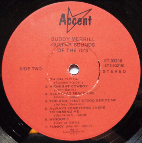 Here we are Monday again, and as I was digging through a pile of records, I realized I had this one on ice and hadn’t reviewed it. It’s kind of an odd ball record that I picked up a few years ago for less than a buck. It looked interesting, and it also had a cover of “Son of a Preacher Man” as well as “Oh Calcutta”. Let’s get into some straight up Easy Listening Funk with Buddy Merrill and “Funky” on Accent Records from 1970.