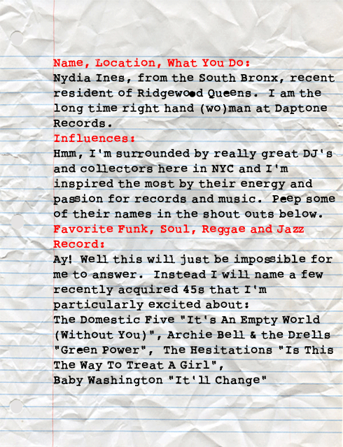 Nydia Ines aka The Honeydripper has been an NYC 45 staple for a minute. I remember sharing the booth with her back in the hey day of The Lucky Cat when The Budos Bad would pack the small club and all 45 DJs would drop gems to sweaty dancers dancing until the wee hours. We’re happy to have her here in Big Ups, and if you see her playing in your town, make sure you don’t miss it because she packs heat!