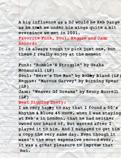 “1/7/05 – Bremen heard it first. At this months Urban Jazz Groove the crowd was treated to the first every public playing of “Give me a minute Pt. 1″, the upcoming first release from Our Label Records.”