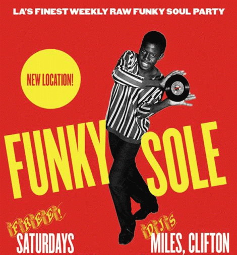 I promote a bunch of East Coast Funk and Soul and music events on these pages, but I need to give a shout to the left coast. I have been a fan of this series of different music nights for a long time. When it was the Root Down, I would try and get my friends in LA to send me the promo flyers because they were so dope. I know I have a few around somewhere. Funky Sole has definitely evolved in the past eleven years. They have had a who’s who of guests at all incarnations of the party (Keb Darge, J-Rocc, Adrian Younge, DJ Nu-Mark, Quantic, Chairman Mao, DJ Shadow, Skeme Richards(among others) and official DJs Clifton, Music Man Miles, DJ Chico, the gang of DJs known as the Soul Travelers, a rotating cast of LA DJs, and unofficial residents Cut Chemist and Egon who have blessed the turntables while opening people’s minds to all kinds of new, funky music from all over the world. Not commercial music. Not radio music. REAL MUSIC. The best part about it? It’s free, every week, and right smack in the middle of all the action.