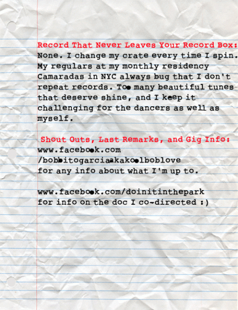 This week Flea Market Funk family, I bring one of the most well recognized New York personalities around. Bobbito Garcia aka DJ Cucumberslice aka Kool Bob Love aka Make it Happen is a busy guy. Well known from as a DJ, radio personality on WKCR, humanitarian, filmmaker, TV personality, sneaker connoisseur and street ball expert (serious baller people, on and off the court), I have the utmost respect for Bobbito. In my opinion, one of the ambassadors of music and beyond. This interview has been almost a year in the making, and with the release of his latest project: Doin’ It in the Park: Pick Up Basketball NYC, we are finally dropping it here at FMF. This is a unique individual who spins vinyl only, never brings the same records twice to a gig, and keeps a high profile without a cell phone. One of the great personalities to come out of NYC, and repping Harlem lovely, it is my distinct pleasure to have him on Big Ups this week.