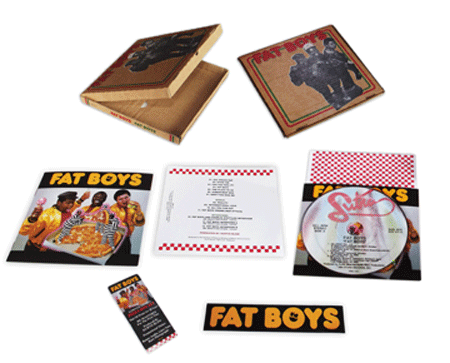 Growing up during the birth of Hip Hop, it wasn’t unusual to hear it on the radio, especially top 40 stations. MTV was all the rage, and the music video not only gave the listener visual recognition of what they were hearing, but it also opened up kids in suburbia to every urban fashion and style. One band that was the epitome of this was the Fat Boys. The name said it all, 3 large rappers (one who beat boxed), who talked about eating food, going to jail, surfing?, and who caused general mayhem keep this musical genre at a playful and entertaining state. A time when a coon skin hat and Cazzeles were hard as hell and rappers weren’t wearing skinny jeans and Jeremy Scott adidas. This brings me to a special treat today: The Fat Boys Deluxe Pizza Box Release.