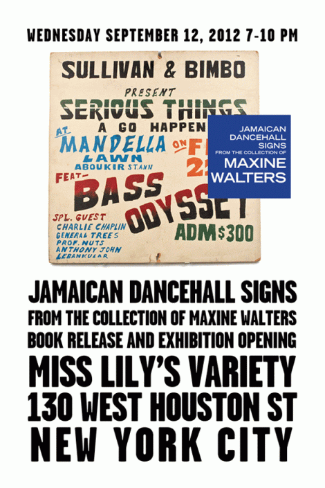 This book is a perfect example of every day Jamaican culture that some who live there don’t even realize exists. These signs are basically illegal, and like graffiti (that is buffed clean) there are periodic sweeps of removing dancehall signs and burning them. I can remember a book not related to music, but culture being published about ten years ago. Sensacional: Mexican Street Graphics told the story of streets signs in Mexico, and while it may not have the same meaning as signs alluring patrons to the dance hall, the DIY attitude is on a level playing ground. Jamaican Dancehall Signs From the Collection of Maxine Walters is a great addition to any lover of Reggae music, Dancehall culture, or Jamaica itself. An important communication vehicle to get people ‘pon de dance floor, IMHO this book’s a keeper. Dust a Sound Bwoy because this dance hall, is under fiyah.