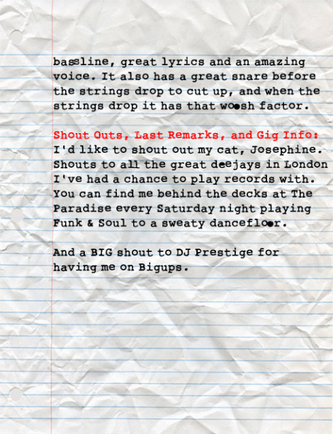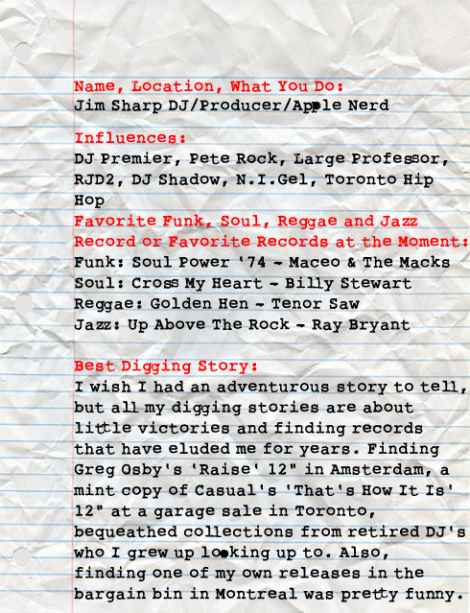 Jim Sharp has been consistently putting out some really great mixes and producing dope beats and re-edits for quite sometime. His edit of William Bell’s “Forgot To Be Your Lover” is a staple in my live DJ sets. The Straighten It Out mix he did was applauded loudly by diggers, DJs, and record lovers alike. Another one of the unsung heroes that works the circuit, plays good music, and does it his way, I’m happy to have him in this latest installment of Big Ups. He is a shining example of a DJ that just gets it done rather than talking too much and worrying about the spotlight. Jim Sharp does work son, and the results speak for themselves.