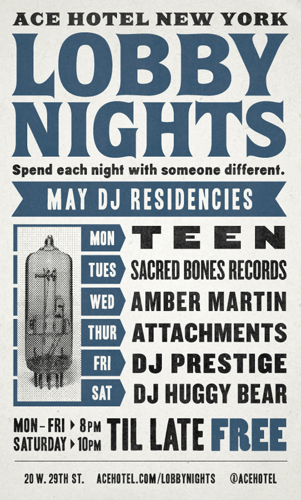 Ace-Hotel-May-2013 Published April 30, 2013 at 590 × 981 in Flea Market Funk x Ace Hotel Fridays in May Next → Share this: Share on X (Opens in new window) X Email a link to a friend (Opens in new window) Email Share on Tumblr (Opens in new window) Tumblr Share on Facebook (Opens in new window) Facebook Share on Pinterest (Opens in new window) Pinterest Share on Reddit (Opens in new window) Reddit Like Loading...