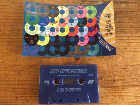 French DJ, turntablist, and producer Aeon Seven is always involved in some interesting projects, so it’s fitting that he release this limited edition mix tape (on cassette no less) of one of the most innovative funk and soul labels out there: Funk Night Records. Made strictly from forty fives from the Funk Night Records catalog, Aeon Seven proceeds to destroy and conquer the music on wax. Precise cutting and stealth mixing propel this one of a kind mix to higher levels as the music used is just as one of a kind as the mix is. Funk Night’s roster is legendary, and we are excited that an artist like Aeon Seven chose to highlight the tremendous back catalog of this label for the mix.