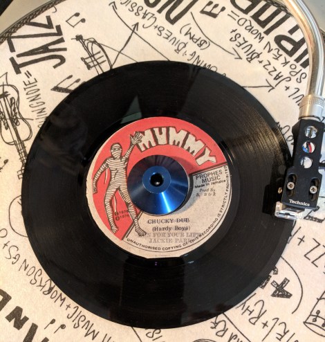 Happy Halloween from Flea Market Funk! We couldn’t think of a better way to celebrate this fine day than with some smashing, 1970’s reggae from Jackie Paris. This forty five had eluded me for a while and every time I saw a Mummy 45 I’d pick it up in a crate and get disappointed. I’d buy the damn thing anyway. That was until recently, when the exact same thing happened to me. I saw the label, and read “Chucky Dub”. Damn it, fooled again. But wait, “Chucky Dub” was crossed out in black marker that was worn off. Hand stamped underneath going into the bottom of the label was: Jackie Paris “Run For Your Life”. Done and dusted. $10 later it was in my bag for good. Didn’t really know too much about this one except it was produced by Winston Riley’s brother Buster, and that the flip dub was played by The Mercenaries (Can someone confirm this on this version?). I did, however, get from a very reliable source that many of these records were mislabeled or stamped different, hence the one that I picked up was the same. My theory still stands. Records that you were meant to have come to you. There are no two ways about it. Jackie Paris classic was meant to make it to Jersey City in whatever roundabout way and into my box. Thanks once again to Tim Harris for always scratching the itch and coming through with records when he is in town. Big Ups. So, whatever you are doing for Halloween; taking the kids out trick or treating, getting dressed up for a school night Halloween bash, etc., remember this. “Run for your life, he’s behind you with a knife! Run! Run! Run!” Enjoy your Halloween and be safe out there.