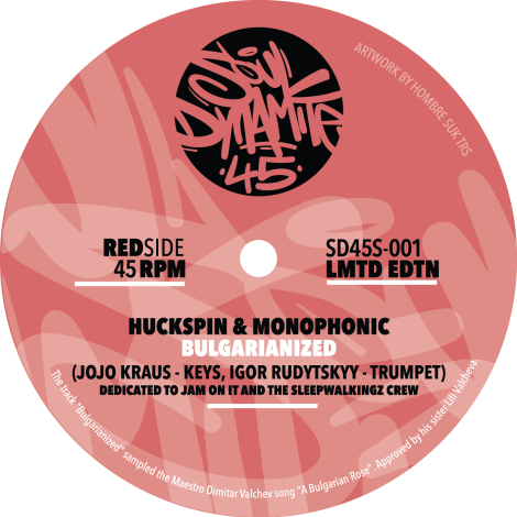 For those who like their sevens with a big beat and heavy everything, today is your lucky day. For the debut forty five on the Soul Dynamite label out of Sofia, Bulgaria, they have chosen to go up hard on this release. The first side, aka the red side features Huckspin & Monophonic, two DJs from Mannheim, Germany as well as Jojo Kraus and Igor Rudytskyy on the keys and trumpet repectively. “Bulgarianized” is built around a sample from a well known, early 1970’s Bulgarian track, “A Bulgarian Rose” composed by Maestro Dimitar Valchev. For sure a side made for all the B Boys and B Girls out there. Specifically it is dedicated to the Sleepwalkingz Crew from the Jam On It Festival who will no doubt crush the area with it. Definitely one for the floor, it ticks all the boxes for a great track to get down to.