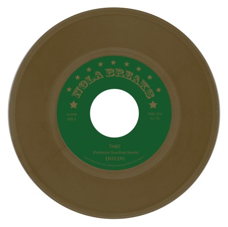 Monday morning and we’ve got the funky scoop for you. You see, Superjock Records out of New Orleans is moving like a freight train through the night with another NOLA Breaks volume on 45. We are up to volume nine, and this time Professor Shorthair has teamed up with the Bay Area’s DJ Platurn to relick two important originals for the dance floor. Shorthair takes a killer track in The Enticer’s “Thief”, a heavy drum filled original made brought to the mainstream by Mos Def’s “Napoleon Dynamite” and other DJs who have been popping that 45 for years. On the flip, Platurn gets busy with Warren Lee’s “Underdog Backstreet” and gets the party started right and quick-ly, niftily, aw you know the rest. The turntablist adds in plenty of bars and samples, so you may want to pick up doubles of this one. Pressed up on gold colored vinyl with a limited pressing of 500, it also contains a heavy duty sleeve and collaboration stickers as well. Two sides of party rocking joints, so get them before they are gone. Both DJs/ producers have been lighting up their respective parts of the nation with exclusive releases, mixes, and the like for years. It’s great to see them work together on this project. It’s important to support people like Shorthair and Platurn, who both do a great service for the DJ and music industry.