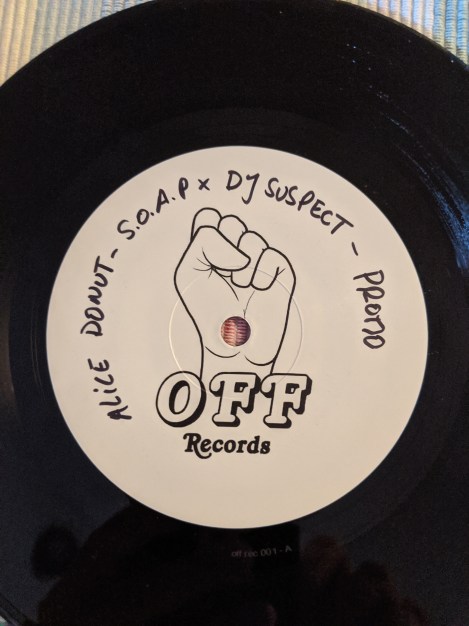 Coming straight out of France and Eugene, Oregon, the man known as DJ Suspect, French purveyor of musical style, turntables, selector, producer and basketball fanatic (don’t let him get you in the low post) links up with Off Records and Son of a Pitch to bring us “edits from jerky French songs”. Whether you find them to be jerky, familiar, unfamiliar or the like, there is a common thread throughout these two sides of the record. They are funky. They are quirky. They are what some people would call weird. But that’s ok because they are bad ass. The reworking of C’est Pas Prudent” by Alice Dona, with the funky organ injected with a hard beat behind it will please the most discerning head who is confused. It’s a tougher than leather relick that will have you bopping up and down to that sexy French sound baby. It definitely swings. The flip, an edit of “Le roi d’Angleterre” by Nino Ferrer is a great take on an already bad ass track. This one has B-Boy written all over it. It’s fitting because this is the kind of heavy shit Suspect is known for in his sets.