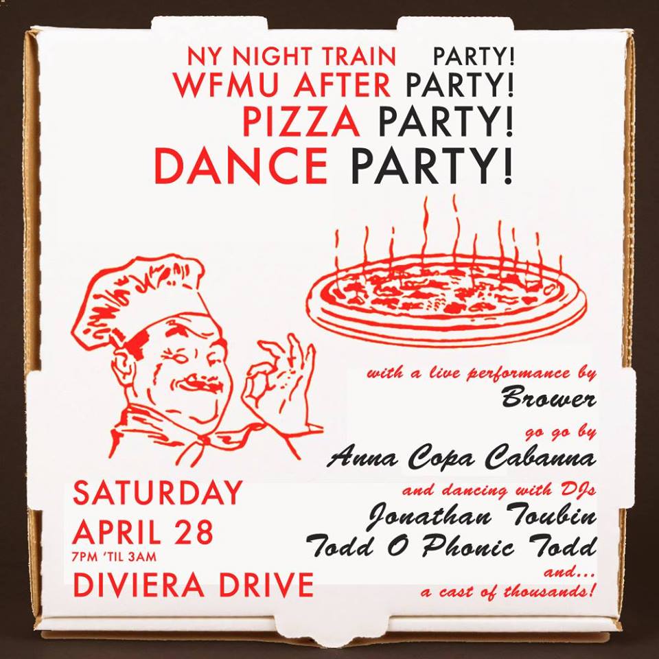 WFMU Pizza Dance Party 4 28 Published April 19, 2018 at 960 × 960 in Gigs ← Previous Next → Share this: Share on X (Opens in new window) X Email a link to a friend (Opens in new window) Email Share on Tumblr (Opens in new window) Tumblr Share on Facebook (Opens in new window) Facebook Share on Pinterest (Opens in new window) Pinterest Share on Reddit (Opens in new window) Reddit Like Loading...