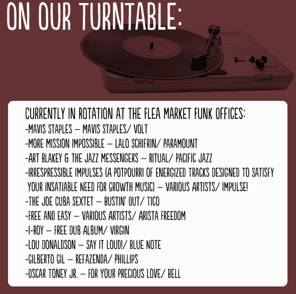On-Our-Turntable-List-BLK Published September 11, 2012 at 590 × 586 in Welcome To Flea Market Funk! ← Previous Next → Share this: Share on X (Opens in new window) X Email a link to a friend (Opens in new window) Email Share on Tumblr (Opens in new window) Tumblr Share on Facebook (Opens in new window) Facebook Share on Pinterest (Opens in new window) Pinterest Share on Reddit (Opens in new window) Reddit Like Loading...